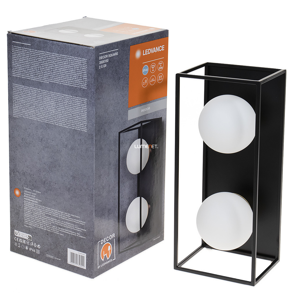 Lampa de perete cu ramă Ledvance cu 2 socluri, negru (Decor Square) este un corp de iluminat modern din oțel cu două socluri G9. Corpul de iluminat are o lungime de 350 mm, o lățime de 150 mm și o înălțime de 150 mm și cântărește 1,5 kg. Produsul are protecție IP44, fiind potrivit pentru utilizarea în medii umede. Corpul de iluminat nu include o sursă de lumină; este necesară o sursă de lumină înlocuibilă, care permite personalizarea fluxului luminos, a culorii luminii, a puterii și a temperaturii culorii. Produsul nu este reglabil și are dimensiuni de ambalare de 40 x 20 x 20 cm. Cu culoarea sa neagră elegantă, lampa fabricată de Ledvance se integrează armonios atât în interioare moderne, cât și în cele clasice.