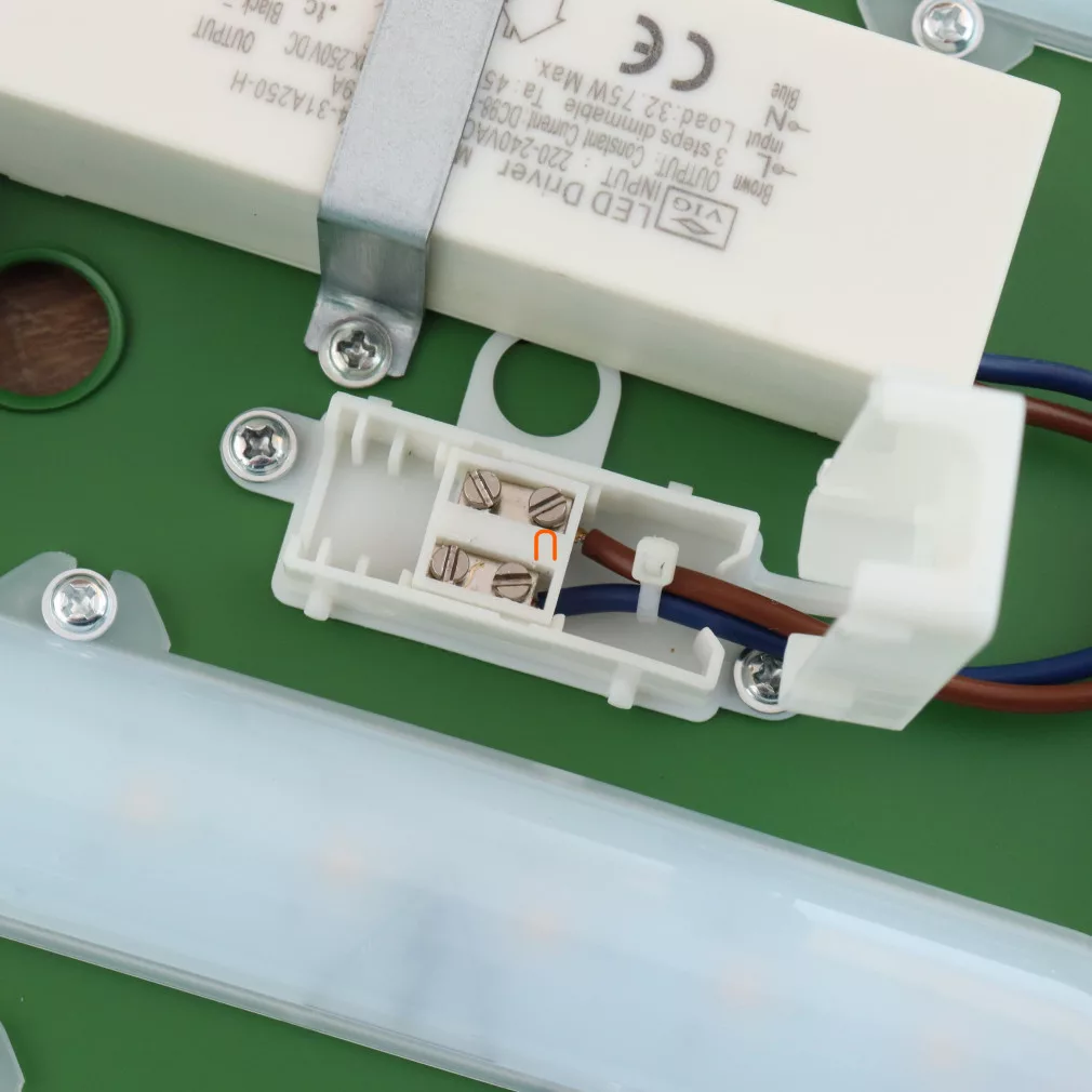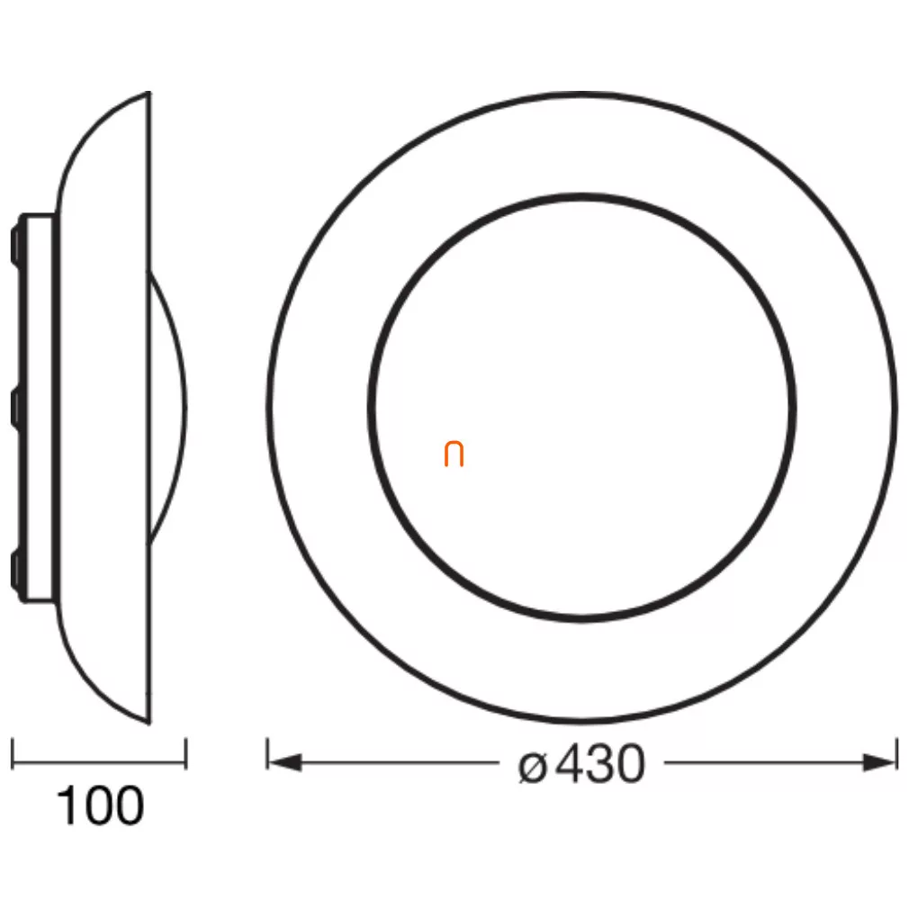 Corpului de iluminat are un modul LED de 35 W care oferă un flux luminos de 1700 lumeni cu o temperatură de culoare albă caldă de 3000 Kelvin. Indicele de redare a culorilor (CRI) al sursei de lumină este de 80, cu un unghi de fascicul de 120°, asigurând o iluminare uniformă. Modulul LED încorporat este reglabil și poate fi controlat cu un întrerupător de perete. Lampa are o durată de viață de până la 30.000 de ore. Este fabricată din oțel și plastic, are o tensiune nominală de 220-240 V și un grad de protecție IP20. Lampa are o înălțime de 100 mm, dimensiunile ambalajului sunt 51x51x18 cm și cântărește 1,385 kg. Produsul este fabricat de Ledvance.