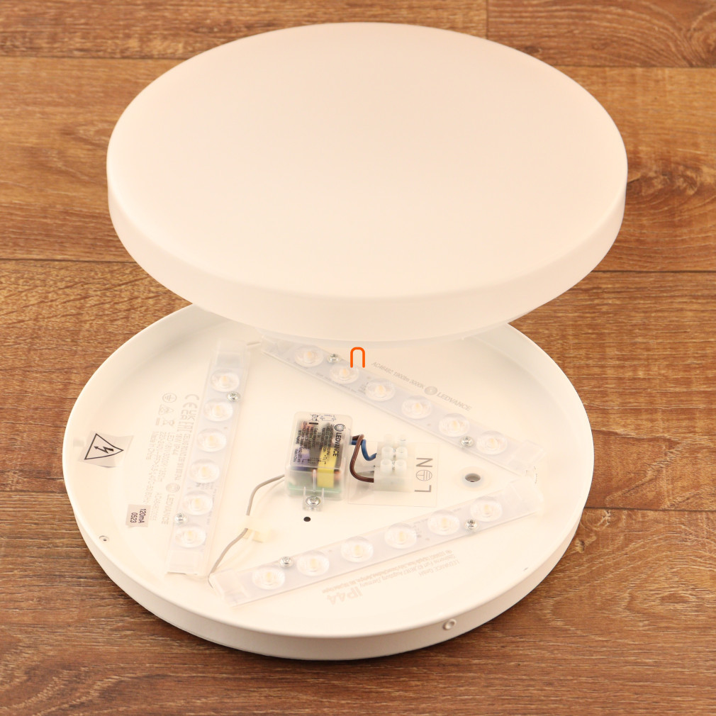 Lampa de tavan pentru baie Ledvance funcționează cu un modul LED de 18 wați, care oferă un flux luminos de 1350 lumeni la o temperatură de culoare albă caldă de 3000 Kelvin. Corpului de iluminat are un diametru de 255 mm, o înălțime de 70 mm și o greutate de 0,485 kg. Sursa de lumină LED încorporată oferă un unghi de fascicul de 120 de grade, un indice de redare a culorii de 80 și o durată de viață de până la 20.000 de ore. Produsul are protecție IP44, fiind potrivit pentru utilizarea în locuri umede, cum ar fi băile. Corpul de iluminat este fabricat din oțel, are culoarea albă și o tensiune nominală de 220-240 V. Dimensiunile ambalajului sunt: 27 cm lungime, 27 cm înălțime și 8 cm lățime. Producătorul este Ledvance.