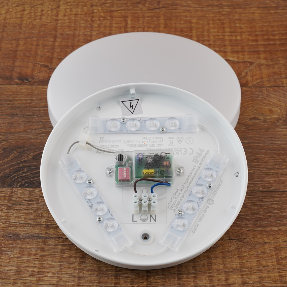 Lampa de tavan pentru baie Ledvance funcționează cu un modul LED de 12 W echipat cu un senzor de nivel de zgomot, oferind o lumină albă rece suplimentară cu o temperatură de culoare de 6500 K. Corpul de iluminat are un flux luminos de 900 lumeni, un unghi de fascicul de 120° și un indice de redare a culorii de CRI 80. Senzorul integrat de nivel de zgomot și luminozitate permite controlul automat, iar luminozitatea poate fi reglată în interiorul corpului de iluminat. Datorită clasei de protecție IP44, este potrivit pentru utilizarea în băi și este rezistent la stropirea cu apă. Corp de iluminat este fabricat din oțel, de culoare albă, cu un diametru de 21 cm și o înălțime de 6 cm. Produsul are o tensiune nominală de 220-240 V și o durată medie de viață de 20.000 de ore. Pachetul include modulul LED, astfel încât nu este necesară o sursă de lumină suplimentară.