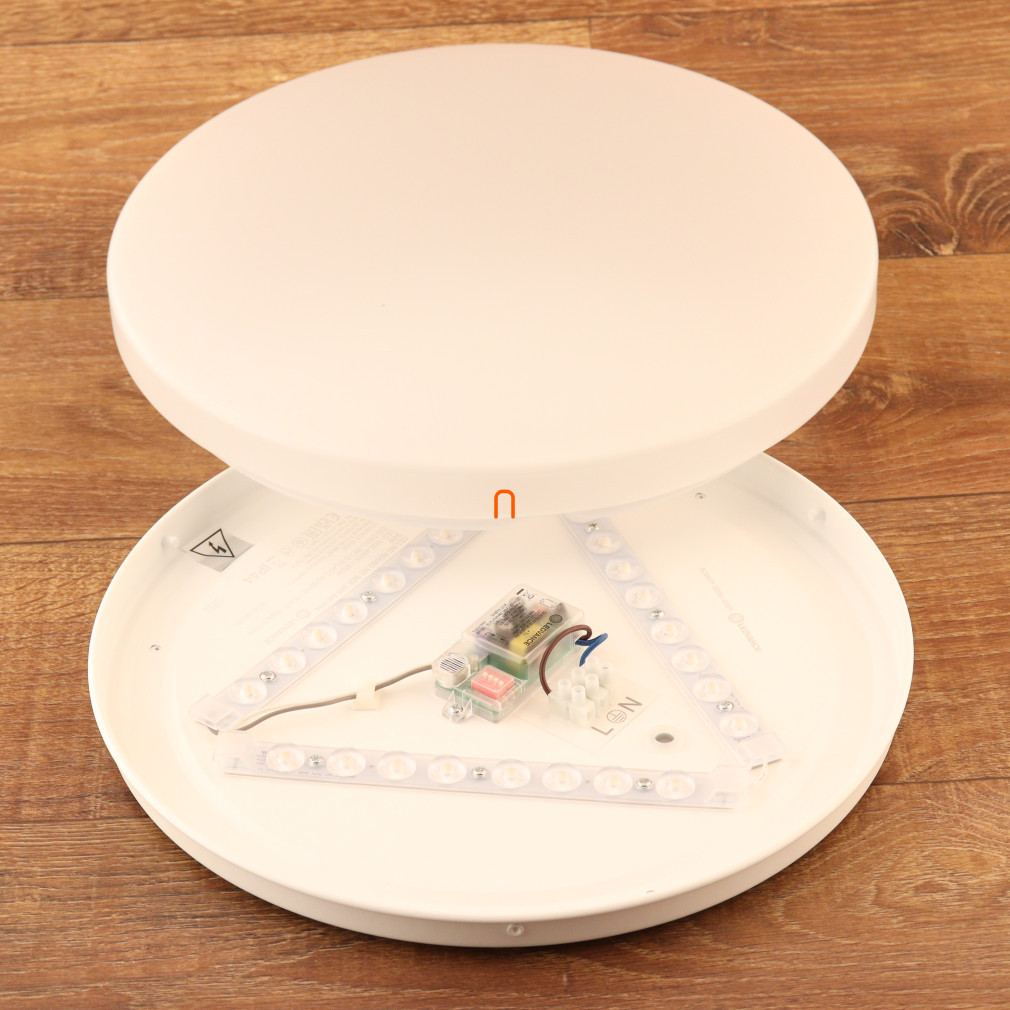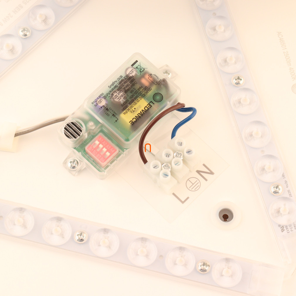 Lampa de tavan pentru baie Ledvance cu senzor de zgomot și modul LED de 24 W oferă un flux luminos de 1800 lumeni la o temperatură de culoare alb rece (4000 K). Corp de iluminat este fabricat din oțel, de culoare albă, cu un diametru de 325 mm și o înălțime de 72 mm. Senzorul integrat de zgomot și luminozitate permite controlul automat al intensității luminii, care poate fi reglată în interiorul corpului de iluminat. Produsul oferă un unghi de fascicul de 120°, un indice de redare a culorii de 80 și protecție IP44, fiind potrivit pentru utilizarea în locuri umede. Are o durată de viață medie de 20.000 de ore și o tensiune nominală de 220-240 V. Pachetul include și o sursă de lumină LED.