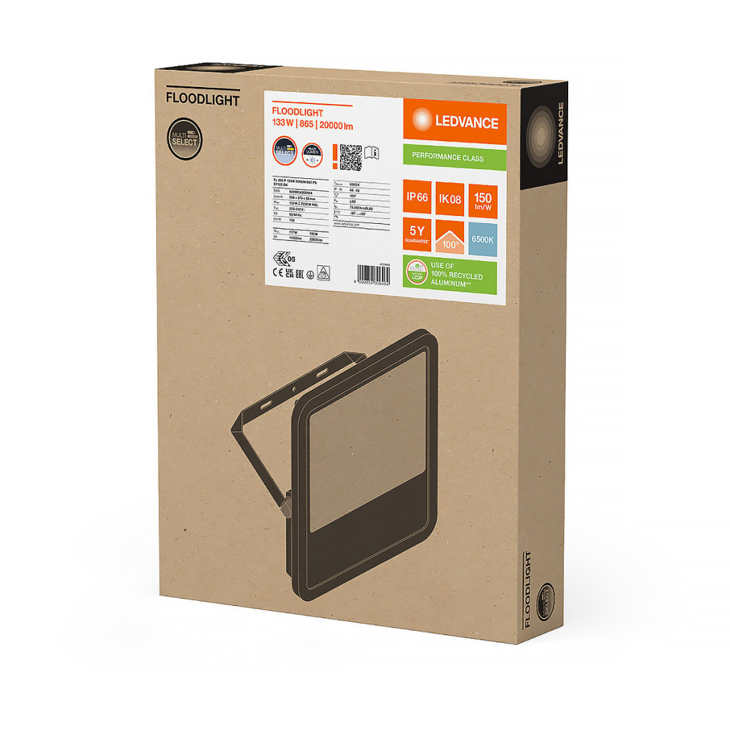 Ledvance Professional Floodlight 200 spot LED reglabil, 20.000 lm/17.500 lm, 6.500 K, 133 W, RA80, 100° x 100°, IP66, 294 mm