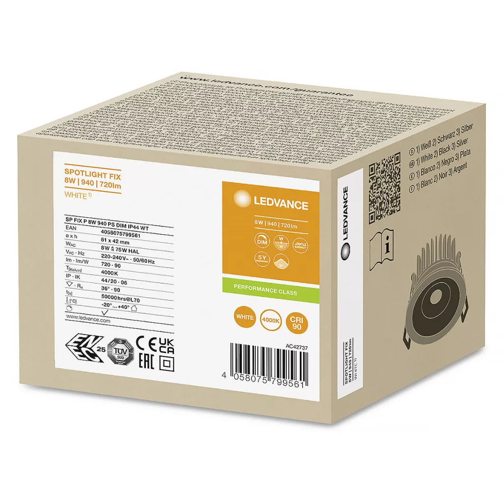 Ledvance Professional Spot Fix Spoturi Lampă spot LED reglabilă, 720 lm/540 lm/360 lm, 4000 K, 8W, RA90, 36°, IP44/IP20