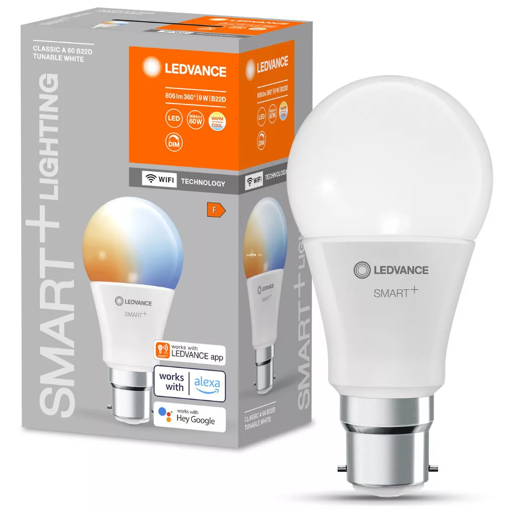 Ledvance Smart+ WIFI B22d LED, 9 W, alb rece/alb cald, 806 lm, opal (Classic)
