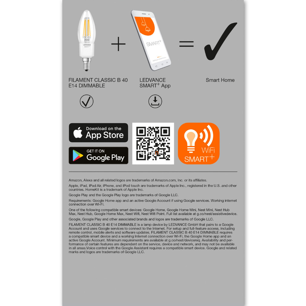 Ledvance Smart+ WIFI bec cu filament LED E14, 4W, 470lm, 2700K
