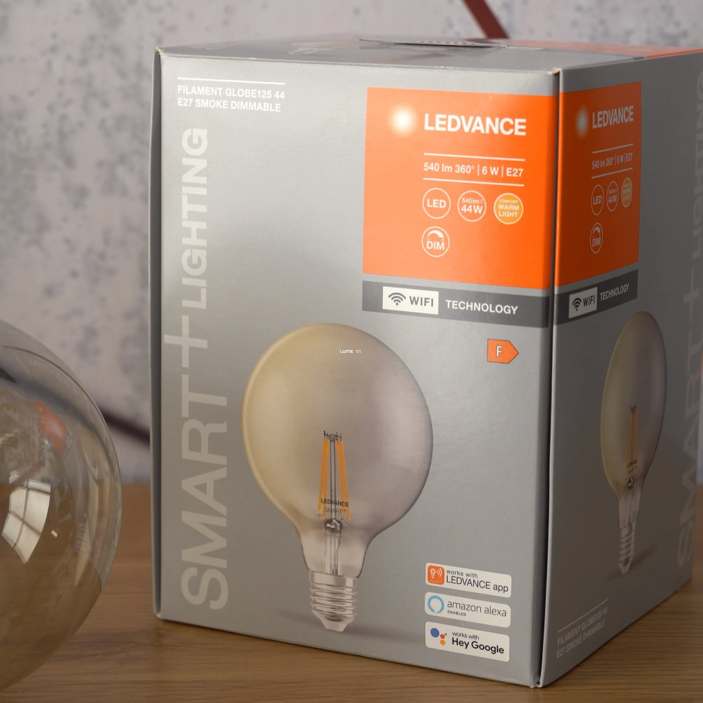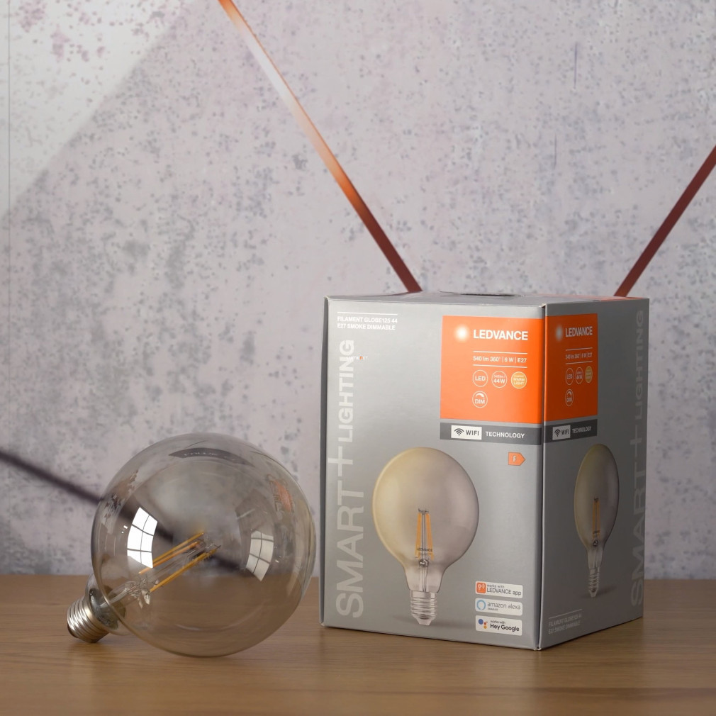 Ledvance Smart+ WIFI Globe124 filament LED E27, 6W, 540lm, 2500K, Fum