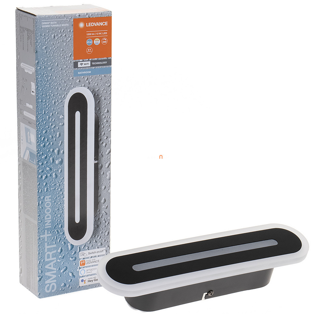 Lampa LED inteligentă Ledvance Smart+ WIFI pentru baie este concepută pentru montare pe perete și dispune de un modul LED de 13 W care oferă un flux luminos de 1200 lumeni. Temperatura culorii lămpii poate fi reglată între 3000 și 6500 Kelvin, permițându-vă să setați lumina albă rece sau caldă, după cum este necesar. Produsul este compatibil cu sistemele Google Assistant și Amazon Alexa și poate fi controlat și prin intermediul unei aplicații. Corp de iluminat negru are protecție IP44 și rezistență la impact IK03, ceea ce îl face potrivit pentru utilizarea în băi. Modulul LED integrat are o durată de viață medie lungă de până la 30.000 de ore și o eficacitate luminoasă de 26 lm/W. Corp de iluminat are o lungime de 300 mm, o lățime de 70 mm și o înălțime de 50 mm.
