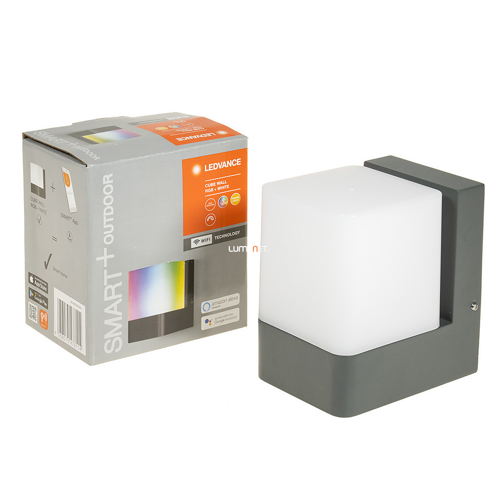 Dacă sunteți în căutarea unei lămpi de exterior neobișnuite, Ledvance Smart+ WiFi Cube RGBW este perfectă pentru dumneavoastră! Modulul LED încorporat se aprinde la un flux luminos implicit de 450 lumeni și o temperatură de culoare de 3000K, dar cu aplicația gratuită Ledvance Smart+, puteți utiliza telefonul mobil pentru a-l regla liber, astfel încât să emită lumină albastră, roșie sau verde.