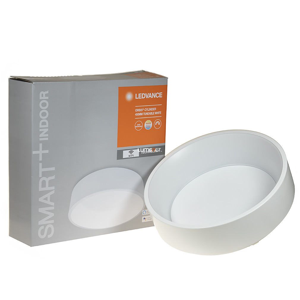 Lampa LED inteligentă Ledvance Smart+ WIFI pentru tavan (Orbis) este un corp de iluminat în stil modern, cu o putere de 24 wați, care oferă un flux luminos de 2800 lumeni. Lampa are un diametru de 45 cm și o înălțime de 13,4 cm, cu o carcasă din plastic alb. Temperatura culorii luminii poate fi reglată între 3000 și 6500 Kelvin, permițând setări de lumină albă rece și caldă. Controlul inteligent permite controlul lămpii prin conexiune Wi-Fi, o aplicație sau o telecomandă opțională. Modulul LED încorporat oferă o durată de viață lungă de până la 30.000 de ore. Produsul are un grad de protecție IP20, fiind potrivit pentru utilizare în interior. Corpul de iluminat conține o sursă de lumină integrată, iar luminozitatea poate fi, de asemenea, controlată, facilitând obținerea atmosferei de iluminare dorite.
