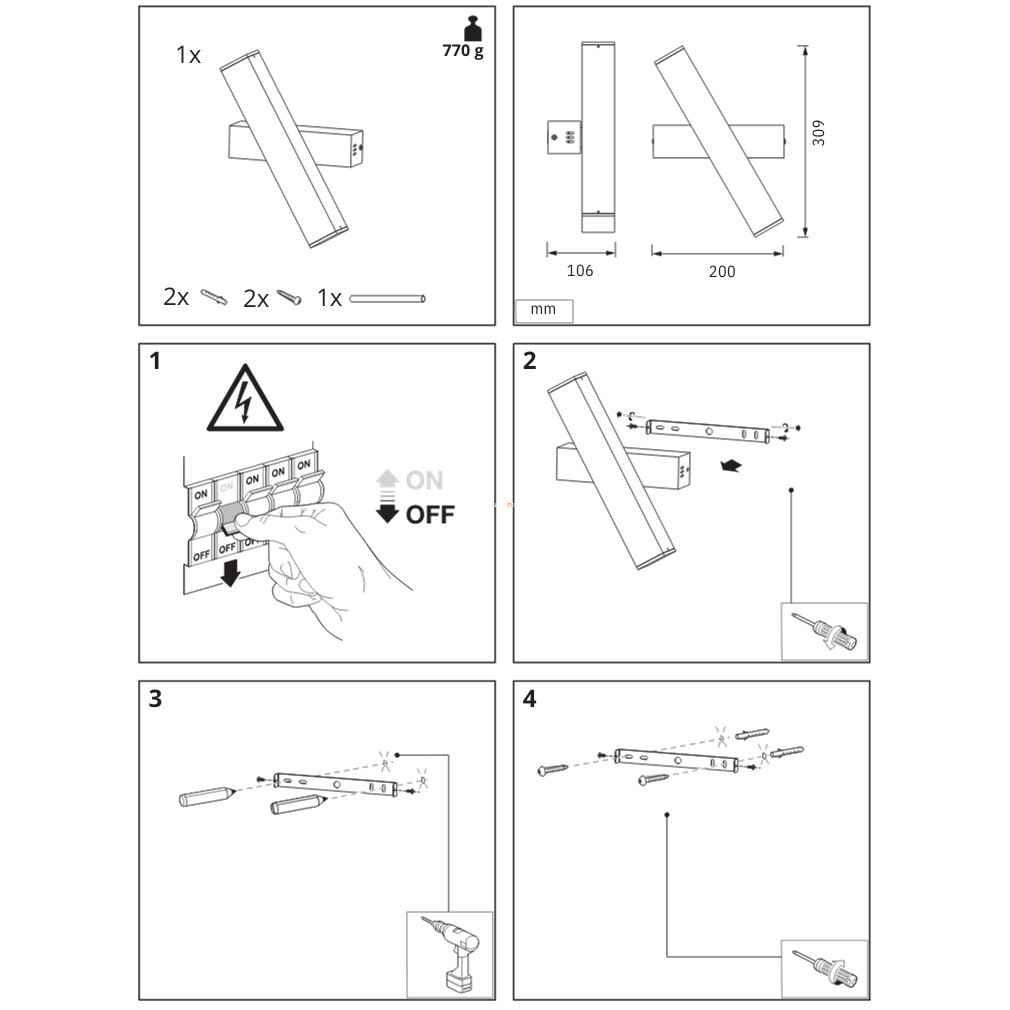 Aplicele inteligente Ledvance Smart+ WIFI Sun@Home au un aspect modern, cu carcasă din aluminiu alb și plastic. Corpul de iluminat funcționează cu un modul LED integrat de 12 W, care oferă un flux luminos de 600 lumeni. Temperatura culorii luminii poate fi reglată liber între 2200 și 5000 Kelvin, permițând ajustarea culorii iluminatului în funcție de necesități. Este controlat printr-o aplicație folosind o interfață Wi-Fi și poate fi utilizată și o telecomandă (nu este inclusă). Lampa are o eficiență luminoasă de 50 lm/W și o durată de viață medie de 30.000 de ore. Produsul are protecție IP20 și este potrivit pentru utilizare în interior. Dimensiuni: 309 mm lungime, 200 mm lățime, 106 mm înălțime. Pachetul include sursa de lumină LED.