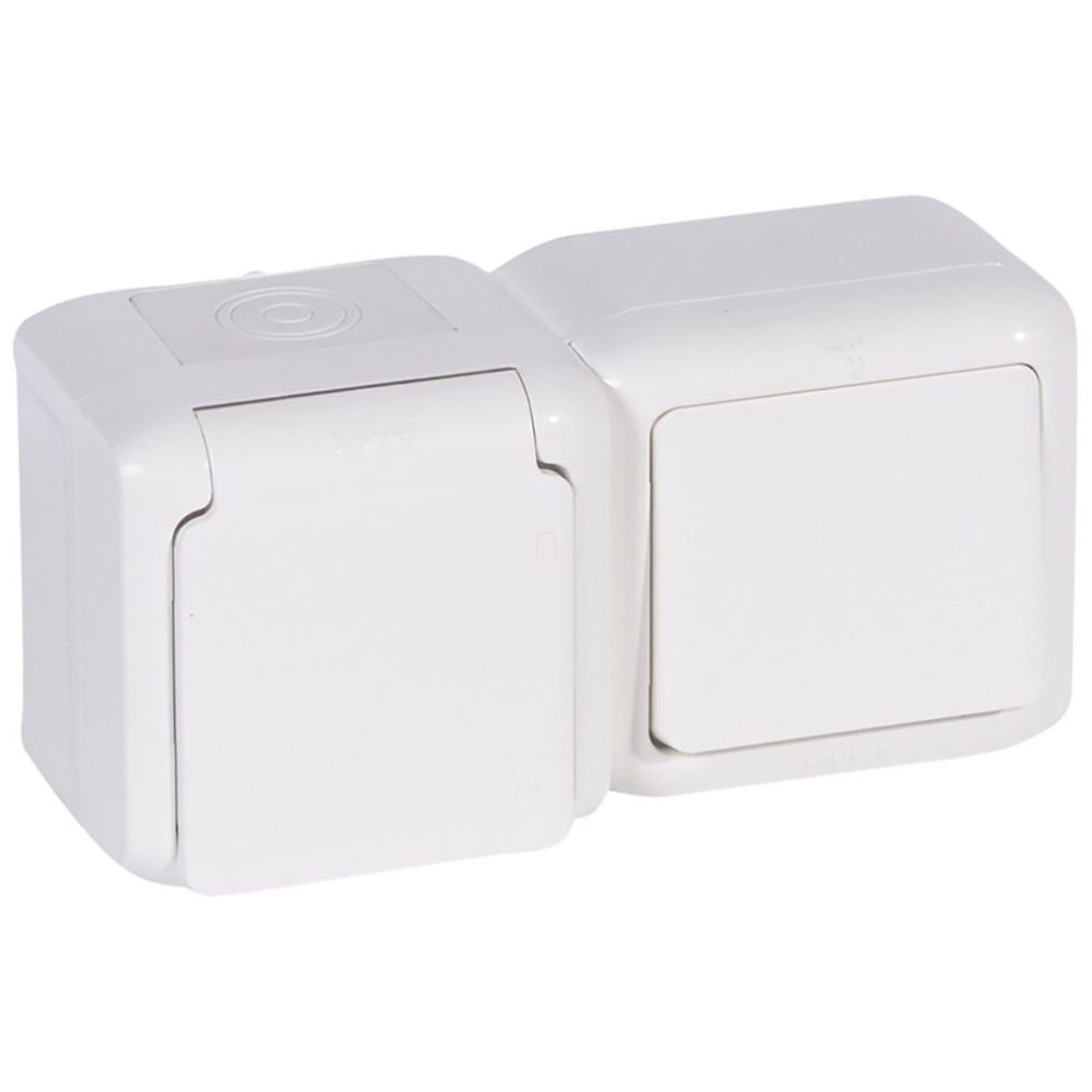 Legrand Forix IP44 fk comutator 1P + priză 2P+F, cu capac cu fixare rapidă, obturator de siguranță, alb - 782371