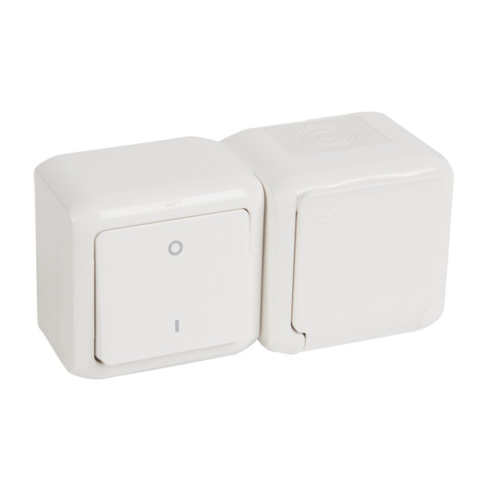 Legrand Forix IP44 fk comutator 2P + priză 2P+F, cu capac cu fixare rapidă, obturator de siguranță, alb - 782372