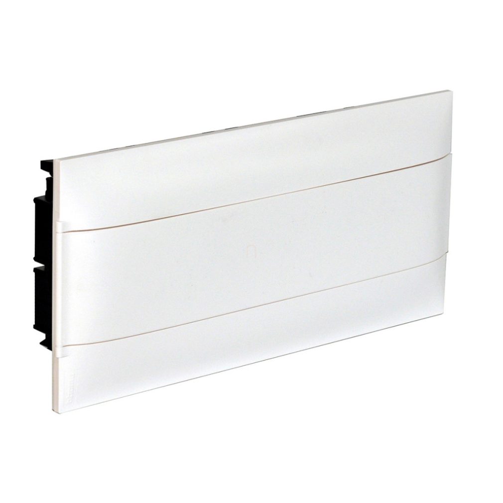 Legrand 137165 PractiboxS cutie de distribuție încastrată pentru gips-carton, 1 rând, 22 module, cu ușă albă, împământare de protecție și terminal neutru