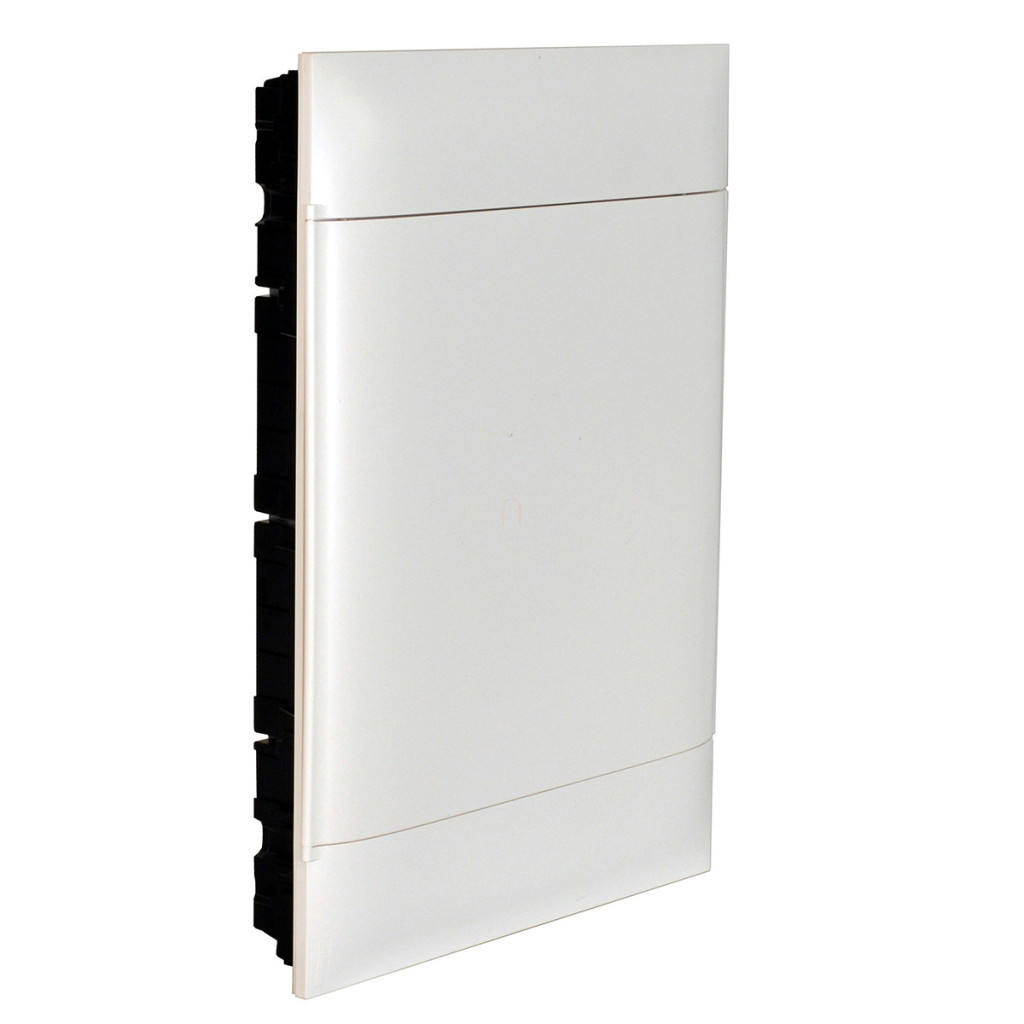 Legrand 137168 PractiboxS cutie de distribuție încastrată pentru gips-carton, 3 rânduri, 18 module, cu ușă albă, împământare de protecție și terminal neutru