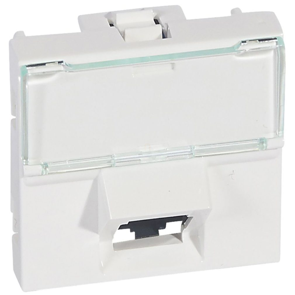 Legrand Program Mosaic 1 x RJ45 (UTP) Cat.6 2 module unghiulare albe - 76503