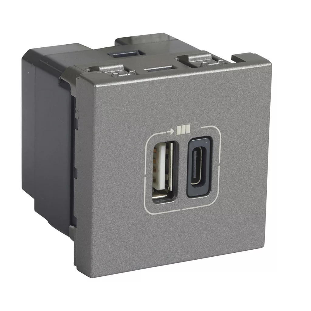 Legrand Program Mosaic dublu USB-A și USB-C-230 V-5 V, 2 module, aluminiu - 79392
