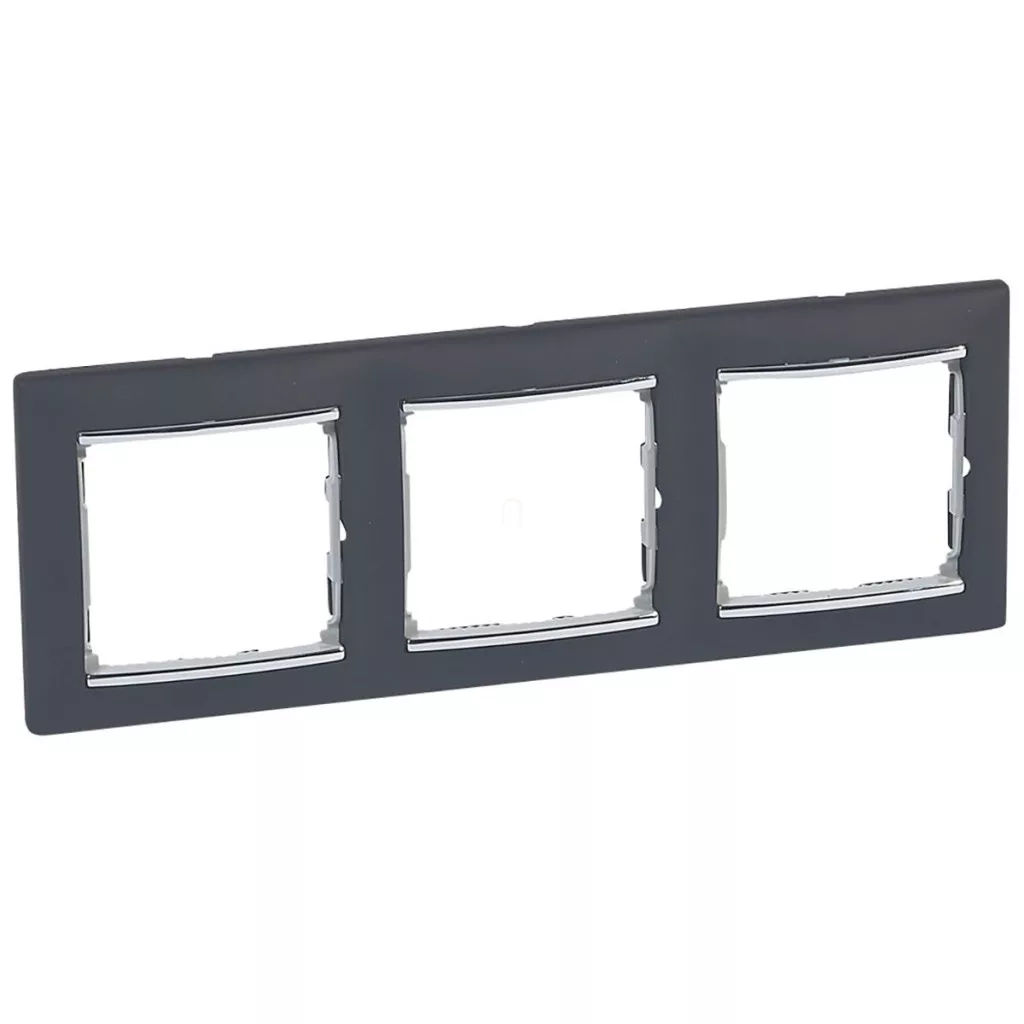 Legrand Valena negru/argintiu, cadru orizontal cu 3 locuri - 770393
