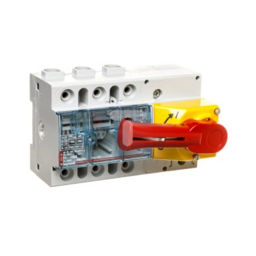Legrand Vistop 100A 3P frontal, manetă roșie/capac galben, întrerupător de sarcină pentru montare pe șină - 22320