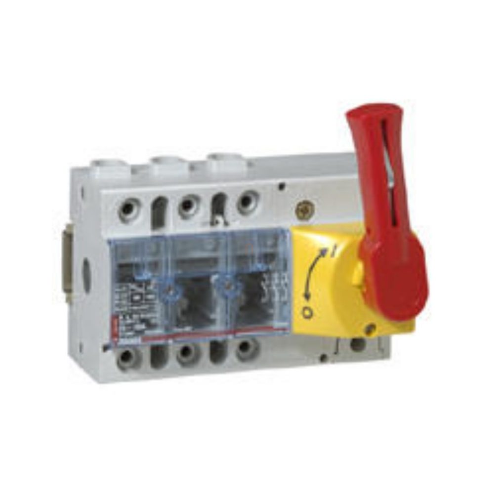 Legrand Vistop 125A 3P frontal, manetă roșie/capac galben, întrerupător de sarcină pe șină - 22334