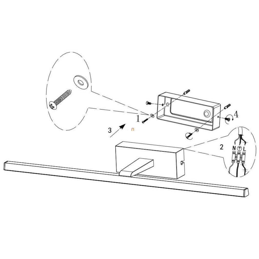 Lampa LED pentru oglindă pentru baie, cu o putere de 8 W și un flux luminos de 450 lumeni, iluminează încăperea cu lumină albă rece (4000 K). Corp de iluminat modern, de culoare albă și opală, este fabricat din metal și plastic și are un modul LED încorporat care nu poate fi înlocuit, dar are o durată de viață medie de 30.000 de ore. Lampa are o lățime de 46 cm, o înălțime de 6 cm și o adâncime de 14 cm și are un grad de protecție IP23, fiind potrivită pentru utilizarea în băi, unde oferă protecție împotriva stropirii cu apă. Produsul nu este reglabil, iar sursa de lumină este inclusă în pachet. Modelul Rábalux 1448 are un cod logistic.
