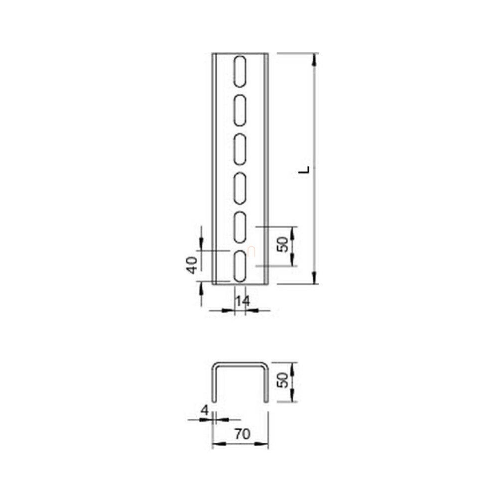 OBO US 7 150 FT Coloană în formă de U, perforată pe 3 laturi, 70x50x1500mm 6340237