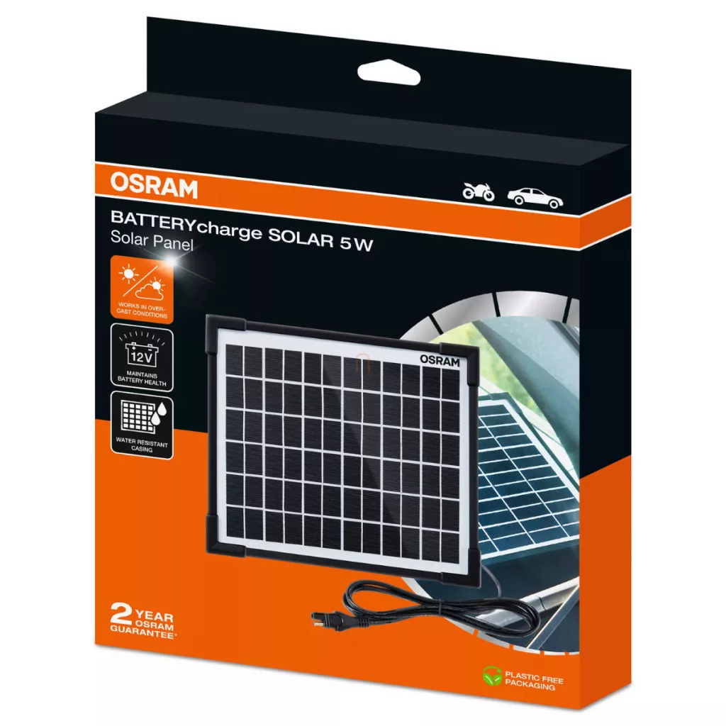 Întreținătorul de baterii solare Osram BatteryCharge Solar 5W este soluția perfectă pentru cei care doresc să întrețină bateria vehiculului fără a o conecta la o sursă de alimentare. Vehiculele moderne dispun de numeroase sisteme electronice, precum alarme, imobilizatoare și monitoare de blocare, care consumă energia bateriei chiar și atunci când vehiculul este staționar. Acest lucru poate fi deosebit de problematic pentru vehiculele utilizate sezonier, precum rulote, mașini de epocă, motociclete sau vehicule comerciale mici. Osram BatteryCharge Solar 5W cu celule solare monocristaline poate furniza până la 5 wați de putere și funcționează chiar și pe timp noros, astfel încât poate fi utilizat pe tot parcursul anului. Protecția IP65 permite utilizarea produsului în aer liber, astfel încât puteți chiar să amplasați panoul în afara vehiculului pentru a maximiza expunerea la lumina soarelui. Dispozitivul este echipat cu un conector de alimentare cu curent continuu și cleme pentru baterie, astfel încât poate fi conectat cu ușurință la bateria vehiculului în două moduri. Protecția împotriva polarității inverse asigură că nici încărcătorul, nici bateria nu vor fi deteriorate în cazul unei conexiuni incorecte. Curentul maxim de încărcare de întreținere este de 0,28 A, ceea ce este suficient pentru a menține capacitatea bateriei în perioadele de neutilizare. Lungimea cablului clemelor este de 30 cm, iar cablul de alimentare are o lungime de 3 metri, ceea ce face conectarea extrem de flexibilă și convenabilă. Dimensiunile sale compacte (205 x 205 x 18 mm) și greutatea de numai 935 de grame îl fac ideal pentru utilizare portabilă, chiar și atunci când este depozitat într-un vehicul. Produsul este certificat CE și TÜV, îndeplinind cele mai stricte standarde europene. Osram BatteryCharge Solar 5W este conceput pentru cei care își parchează vehiculele pentru perioade lungi de timp și doresc să împiedice descărcarea completă a bateriei. Nu este potrivit pentru încărcarea rapidă sau regenerarea bateriilor complet descărcate. Produsul este alegerea ideală pentru toți proprietarii de vehicule conștienți de mediu, care caută o soluție sigură, economică și durabilă pentru a prelungi durata de viață a bateriei.