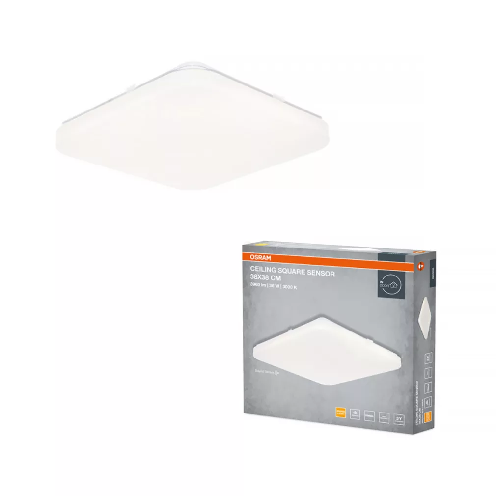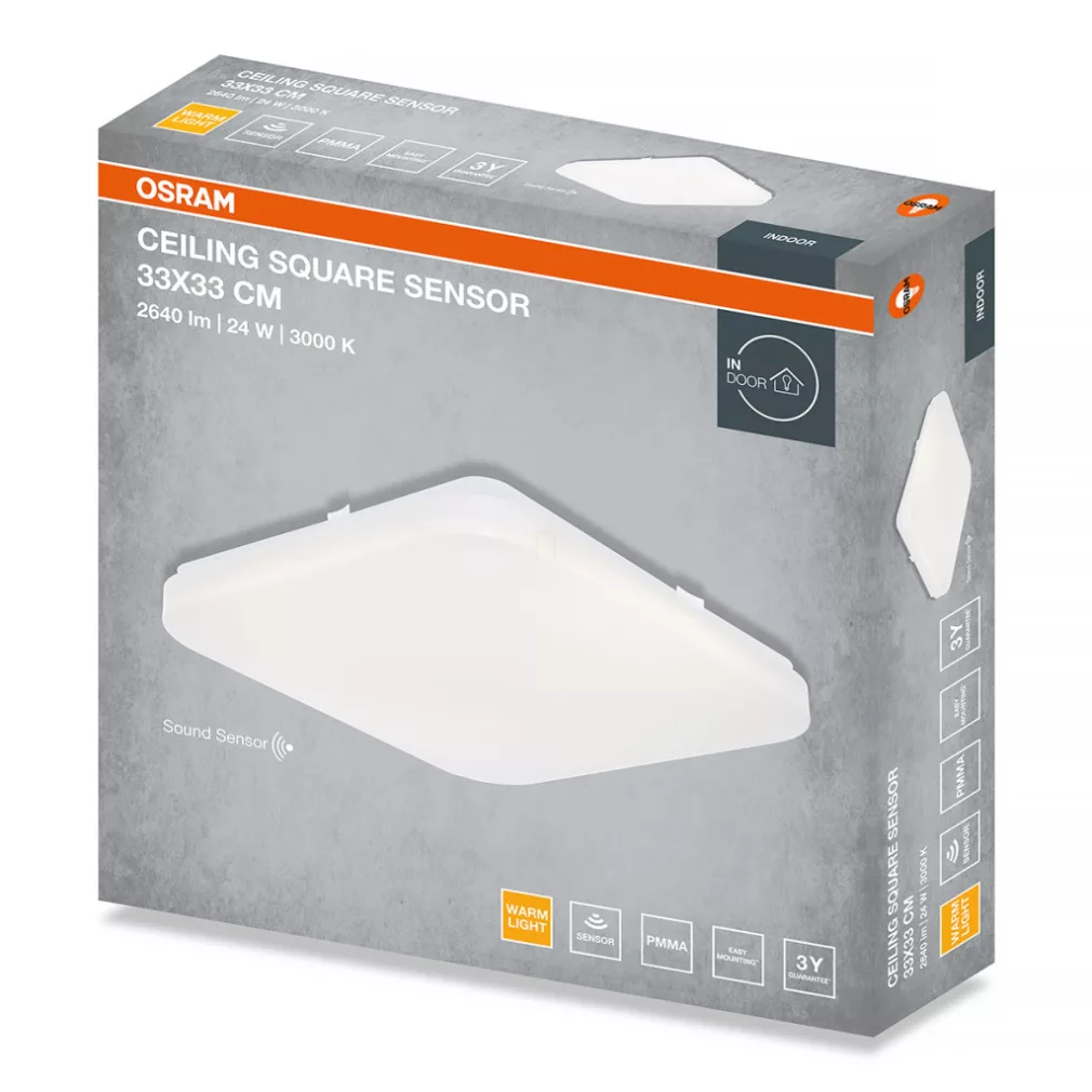 Osram Ceiling Square Sensor lampă LED de tavan cu senzor de sunet și lumină, 33x33 cm, 24 W, 3000 K, 1920 lm, alb mat