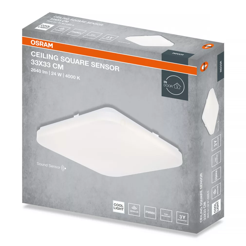 Osram Ceiling Square Sensor lampă LED de tavan cu senzor de sunet și lumină, 33x33 cm, 24 W, 4000 K, 1920 lm, alb mat