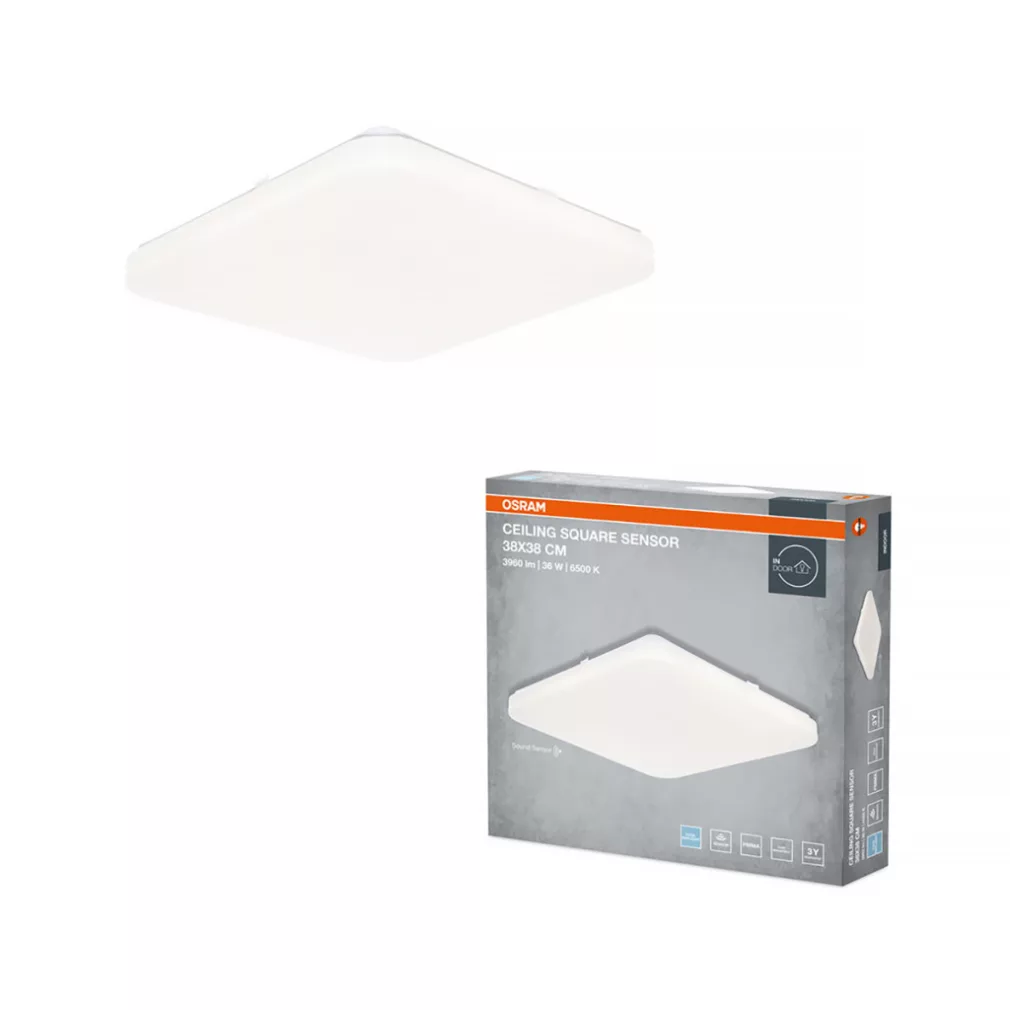 Osram Ceiling Square Sensor lampă LED de tavan cu senzor de sunet și lumină, 38x38 cm, 36 W, 6500 K, 2880 lm, alb mat