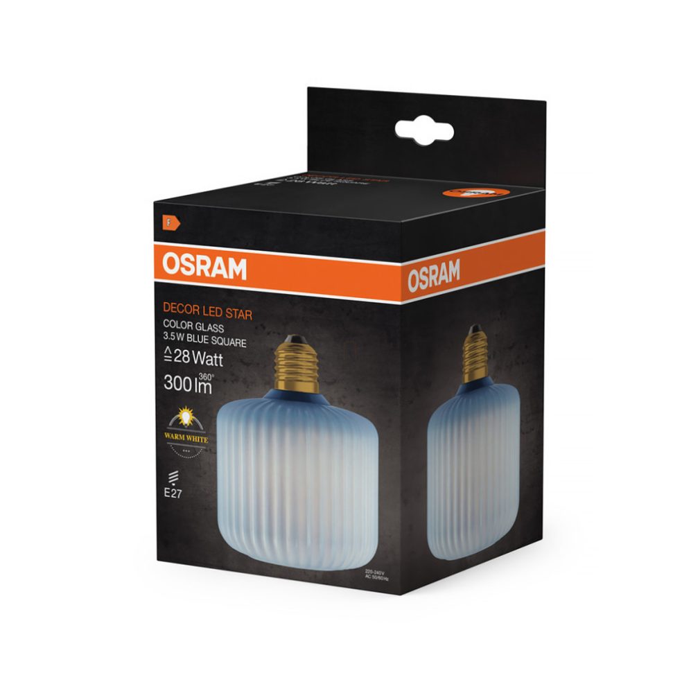 Osram Decor E27 LED sursă de lumină de design, lumină albă caldă, 300 lm, 3,5 W, sticlă colorată cu nervuri, albastră