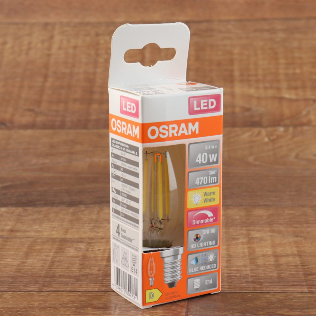 Osram E14 LED SStar+ lumânare 3,4 W 470 lm 2700 K alb cald, reglabil 300° cristalin - înlocuiește becul de 40 W