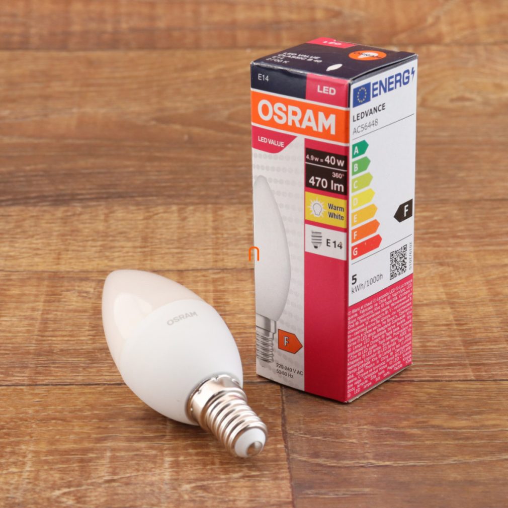 Economie de energie de 85%, calitate Osram – la cel mai bun preț: vă recomandăm sursa de lumină LED Osram CL B 40 5W/2700K E14 470lm, care este un înlocuitor perfect pentru un bec tradițional de 40 de wați, dacă doriți cea mai ieftină sursă de lumină LED care respectă în continuare standardele tehnologice Osram.
