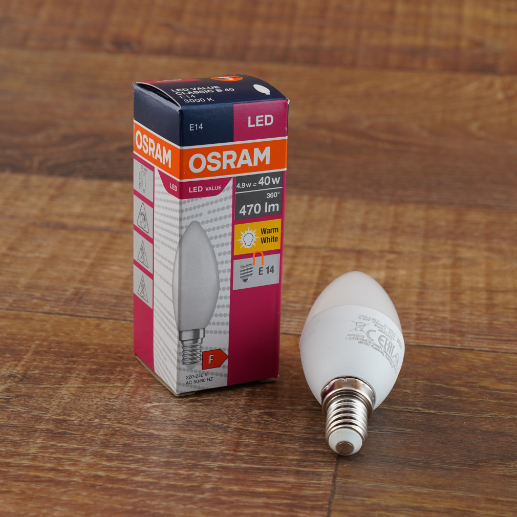 Osram E14 LED Value Classic 4,9 W, 470 lm, 3000 K, înlocuiește becul de 40 W