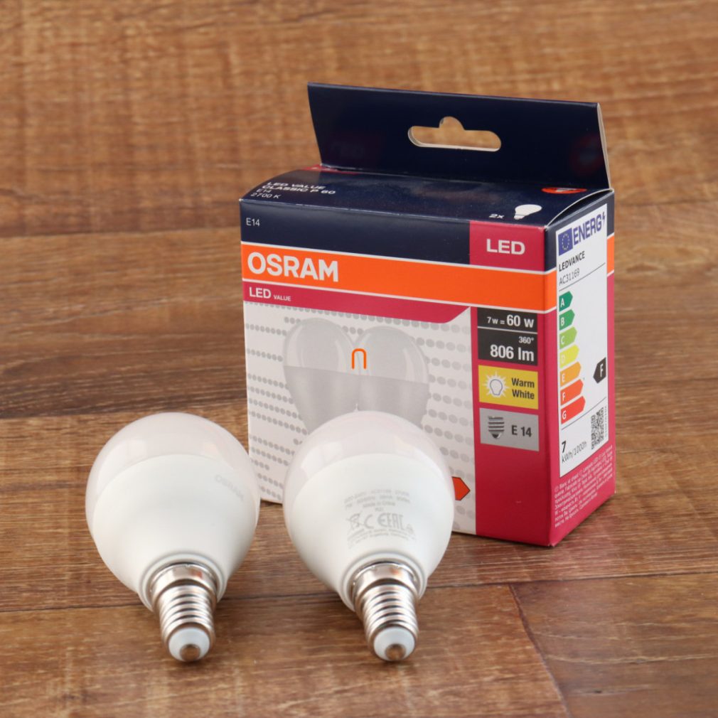 Osram E14 LED Value Classic 7,5 W, 806 lm, 2700 K, înlocuiește becul de 60 W (2 bucăți)