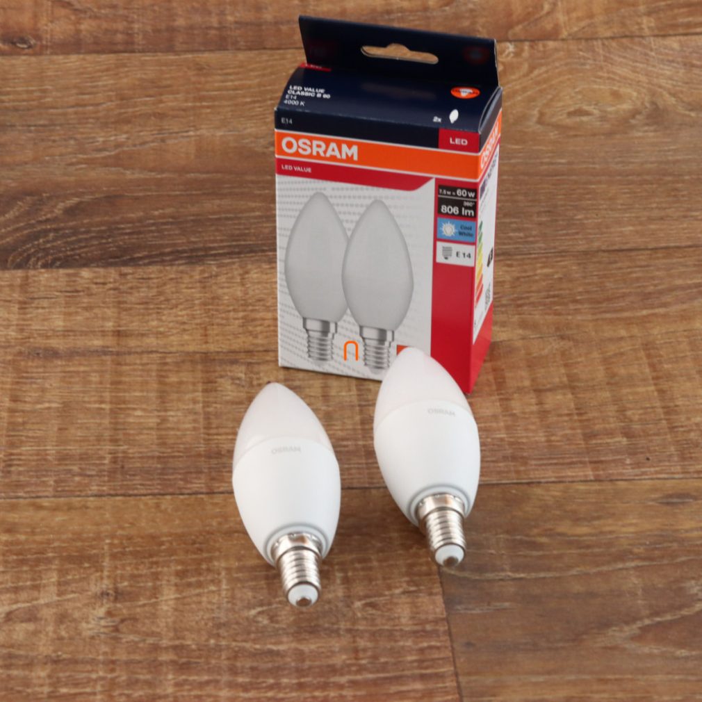 Osram E14 LED Value Classic sursă de lumină tip lumânare 7,5 W, 806 lm, 4000 K, înlocuiește becul de 60 W (2 bucăți)