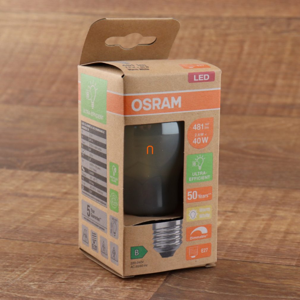 Osram E27 LED, 2,6 W, 481 lm, lumină albă caldă (Classic-B)