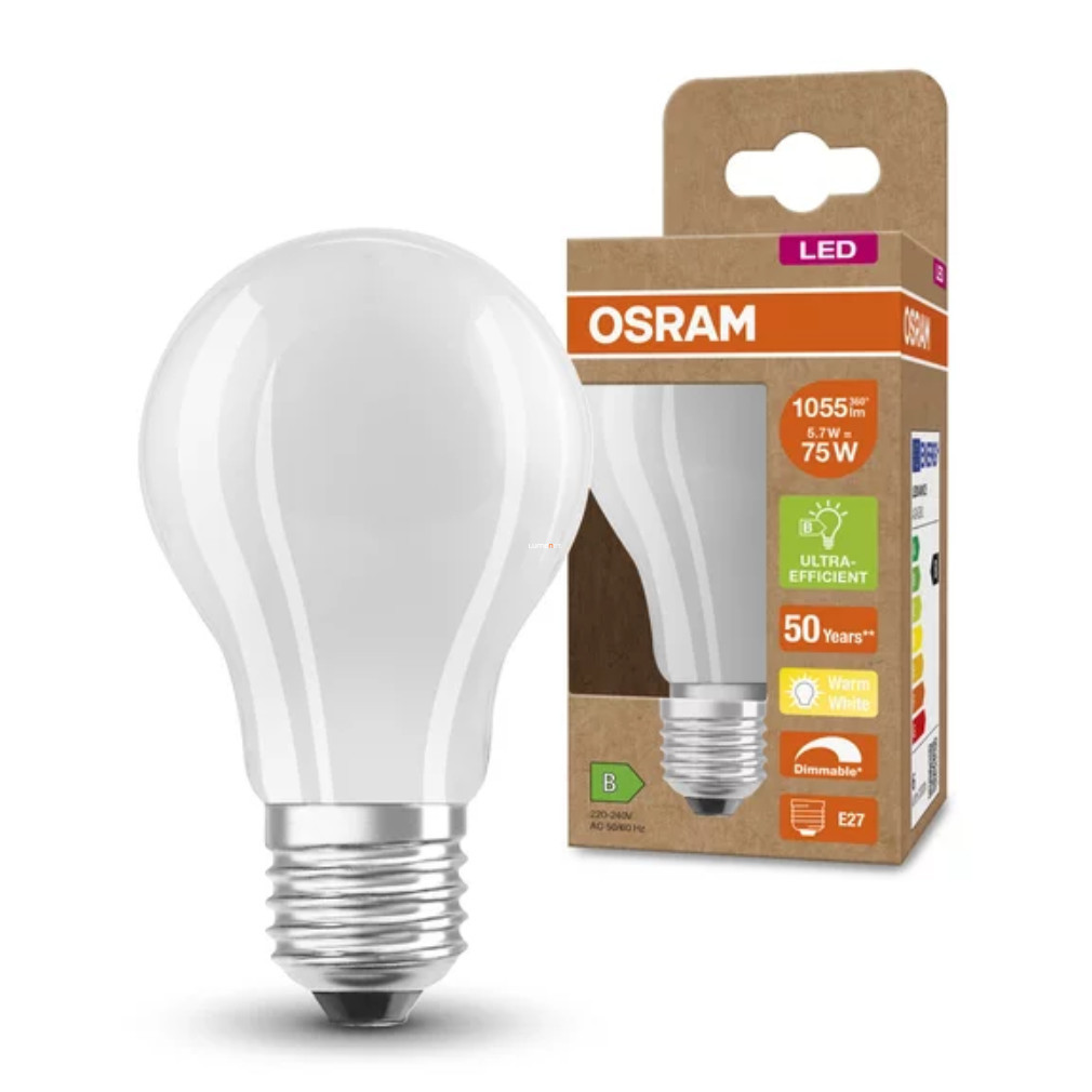 Osram E27 LED, 5,7 W, 1055 lm, lumină albă caldă, nuanță opală (Classic-B)