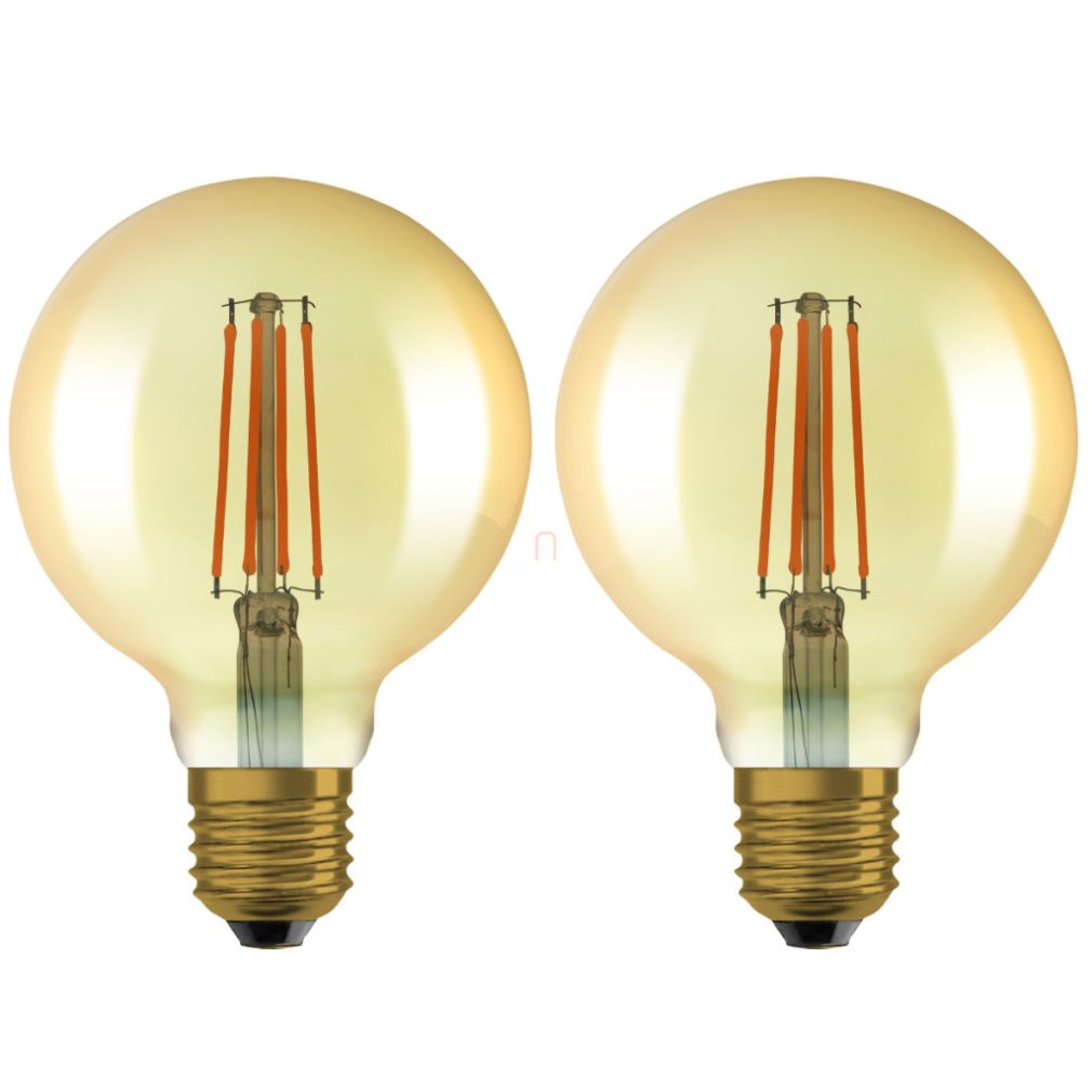 Osram E27 LED 6,5 W, 725 lm, 2400 K, lumină de lumânare, intensitate reglabilă, sticlă aurie - înlocuiește becul de 52 W, 2 bucăți - Vintage 1906 DIM Classic Globe95 Filament auriu
