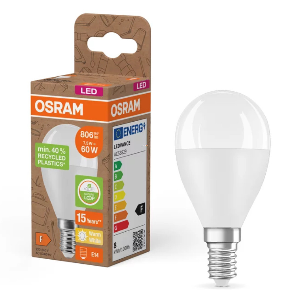 Osram LED reciclat E14, 7,5 W, 806 lm, lumină albă caldă (Classic-P)