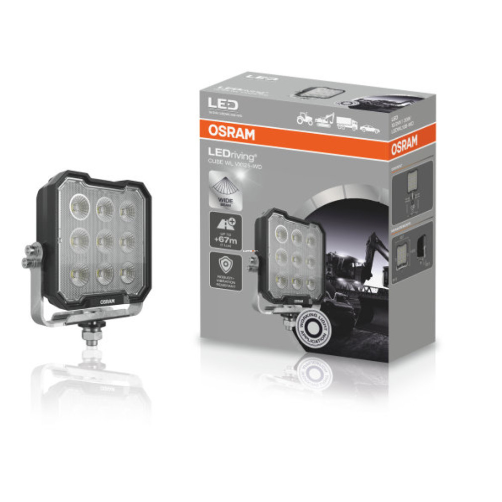 Osram LEDriving Cube WL VX125-WD este o alegere excelentă pentru oricine caută o putere luminoasă maximă și fiabilitate atunci când lucrează în condiții de întuneric și pe teren dificil. Această lampă de lucru LED de înaltă performanță poate oferi o putere luminoasă de până la 3000 lumeni, cu o temperatură de culoare de 6000 Kelvin, creând condiții de vizibilitate naturale, similare cu lumina zilei. Cu distribuția largă a luminii și o rază de acțiune de până la 67 de metri, acesta crește semnificativ vizibilitatea și, prin urmare, siguranța la locul de muncă, fie că este vorba de agricultură, construcții sau vehicule comerciale. Experiența de peste 100 de ani a Osram în domeniul tehnologiei de iluminat se reflectă în această lampă modernă și fiabilă. Compania este prezentă în industria auto din 1919 și a modelat viitorul iluminatului auto cu inovațiile sale de-a lungul deceniilor – Cube WL VX125-WD reflectă această calitate și expertiză. Produsul este fabricat cu o carcasă durabilă din aluminiu turnat și o lentilă din policarbonat rezistentă la spargere, ceea ce îl face rezistent chiar și la cele mai extreme condiții de mediu, inclusiv apă, praf, căldură, frig, impact și vibrații constante. Clasele de protecție IP6K8 și IP6K9K certifică faptul că această lampă poate rezista la medii extreme, în timp ce standardul CISPR25 Clasa 3 asigură imunitatea la interferențe electromagnetice. Lampa de lucru are, de asemenea, omologarea ECE R10, dar nu poate fi utilizată ca far pentru utilizare rutieră. Gama de tensiune de 12/24 V o face universal aplicabilă într-o varietate de vehicule, în timp ce puterea de 30 W garantează o funcționare eficientă din punct de vedere energetic, dar puternică. Luminozitatea oferită de cele nouă LED-uri Osram iluminează perfect zona de lucru, sporind nu numai eficiența, ci și siguranța. Cu suportul standard inclus în pachet, poate fi montată cu ușurință pe camioane, mașini agricole, vehicule de construcții sau chiar vehicule off-road. Osram LEDriving Cube WL VX125-WD este recomandat celor care caută cea mai bună combinație de performanță, durabilitate și inovație într-o lampă de lucru profesională, dar nu este recomandat celor care ar dori să o utilizeze exclusiv pe vehicule rutiere. Această lampă nu numai că luminează, ci și duce experiența de lucru la un nou nivel – totul cu calitatea Osram recunoscută și renumită la nivel mondial.