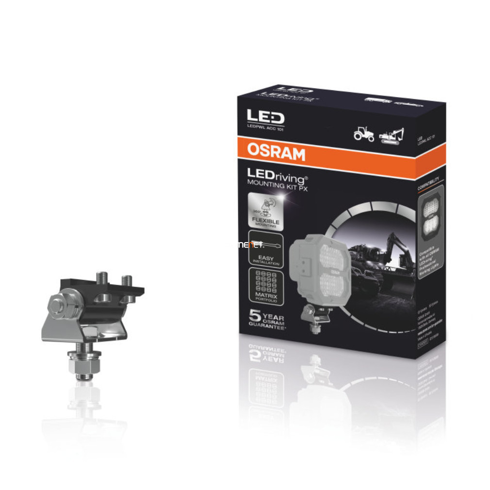 Kitul de montare Osram LEDriving PX este un kit de montare conceput special pentru lămpile de lucru LEDriving Professional PX, care permite instalarea rapidă, precisă și flexibilă a lămpilor pe orice vehicul. Soluția inovatoare de montare cu un singur șurub central nu numai că economisește timp în timpul instalării, dar simplifică și întregul proces de montare. Suportul poate fi rotit la 360 de grade și înclinat la ±15 grade, oferind flexibilitate în direcția luminii, astfel încât unghiul de iluminare să poată fi reglat cu precizie pentru orice situație. Componentele din oțel inoxidabil sunt rezistente la coroziune pe termen lung, în timp ce rezistența minimă la vibrații de 8 g rms garantează o funcționare fiabilă chiar și în condiții extreme, cum ar fi șantierele de construcții, utilajele agricole sau camioanele grele. Seria Osram LEDriving PX este vârful de gamă al iluminatului profesional, unde lămpile cu diferite niveluri de putere și modele de lumină pot fi combinate individual pentru a se potrivi aplicației. Acest kit de montare se potrivește perfect în acest sistem, susținând conceptul Matrix, care permite libertatea completă de a proiecta un sistem de iluminat specific pentru vehicule. Produsul nu este aprobat oficial pentru utilizare în traficul rutier atunci când este aprins, dar poate fi instalat pe orice vehicul ca lumină de lucru. De-a lungul a peste un secol de istorie, Osram a devenit sinonim cu inovația în domeniul iluminatului la nivel mondial. Fondată în 1919, își ia numele de la cele două materiale de bază utilizate în becurile electrice, osmiu și tungsten. De atunci, compania a realizat nenumărate descoperiri, de la primele becuri pentru mașini până la răspândirea tehnologiei halogen și revoluția în tehnologia de iluminat cu LED. Kitul de montare Osram LEDriving PX întruchipează această moștenire sub forma unui accesoriu care nu este doar practic, ci și un partener de încredere pe termen lung în dezvoltarea de soluții profesionale de iluminat. Alegeți acest kit dacă stabilitatea, flexibilitatea și instalarea ușoară sunt importante pentru dvs.