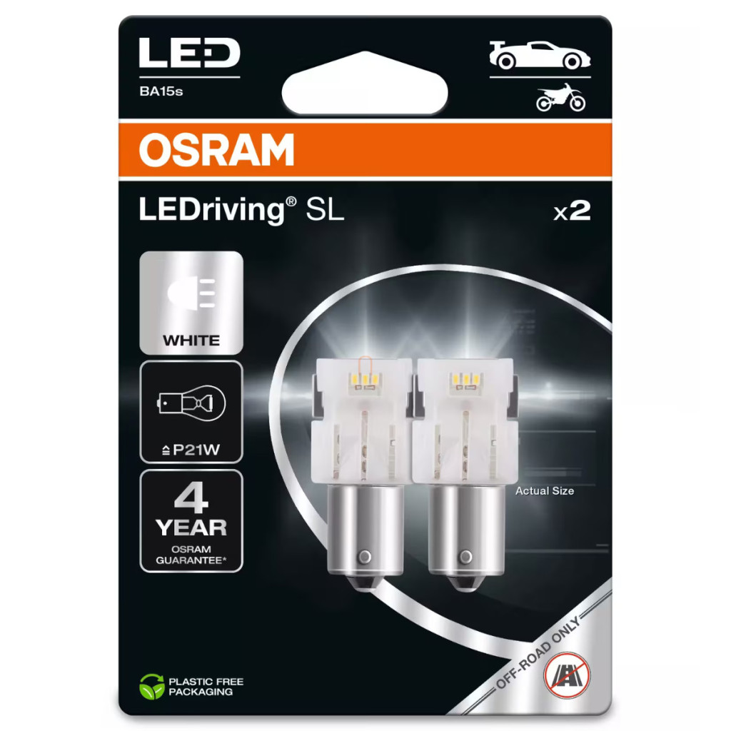 Produsul Osram 7506DRP-02B roșu este o lampă LED concepută pentru a înlocui becul standard P21W. Osram 7506DRP este, de asemenea, un produs off-road, care nu are certificare ECE, deci nu poate fi utilizat oficial în traficul rutier. Cei doi mari producători din industria auto lucrează de ani buni la elaborarea unei norme UE pentru LED-urile retrofit pentru autovehicule, dar în prezent nu există încă LED-uri retrofit care să poată fi utilizate oficial pe drumurile publice din Europa. Produsele Osram LEDriving SL beneficiază de o garanție de 4 ani. În cazul în care, după instalarea LED-urilor, apare un mesaj de eroare sau observați o pâlpâire rapidă, este necesară instalarea unei sarcini suplimentare.
