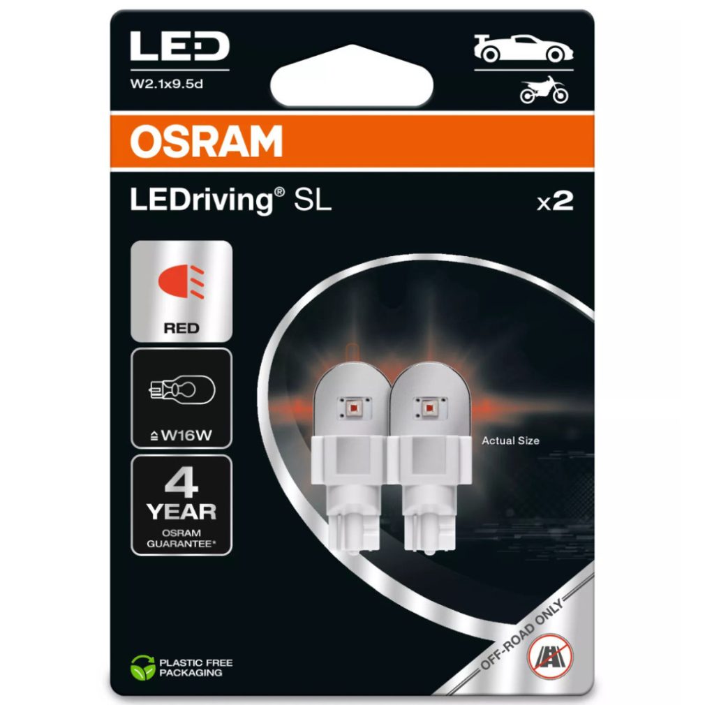 OSRAM LEDriving SL W16W RED, lumină LED roșie intensă, bec semnalizator cu consum redus de energie, bec de schimb ≙ W16W, 921DRP-2BL