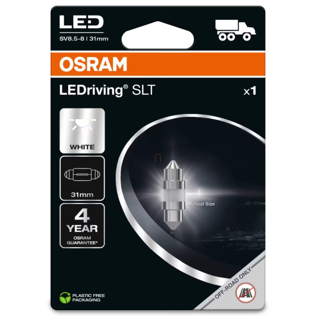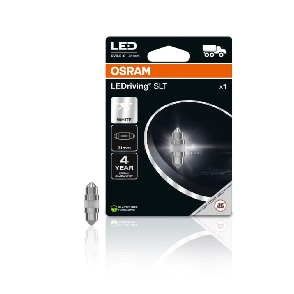 Becul LED Osram LEDriving SLT C5W este alegerea perfectă pentru cei care doresc să îmbunătățească iluminatul din camionul sau vehiculul comercial cu o soluție modernă, fiabilă și eficientă din punct de vedere energetic. Acest bec LED de înlocuire este conceput pentru a înlocui becurile tradiționale C5W și este potrivit pentru sisteme de 24 V, fiind ideal pentru iluminatul interior și aplicațiile de semnalizare în camioane, autobuze și alte vehicule de mari dimensiuni. Datorită tehnologiei LED moderne, sursa de lumină funcționează la o putere nominală de numai 0 wați, dar produce o luminozitate de 45 lumeni, oferind o iluminare uniformă, intensă și bine direcționată. Lumina albă rece, cu o temperatură de culoare de 5700 Kelvin, oferă o luminozitate similară cu cea a luminii naturale, ceea ce nu numai că face interiorul vehiculului mai confortabil, dar și mai sigur, în special atunci când este utilizat noaptea. Cu designul său compact și soclul SV8.5-8, becul poate fi instalat cu ușurință în majoritatea corpurilor de iluminat compatibile. Utilizarea sa reduce cerințele de întreținere, deoarece durata sa de viață de până la 3000 de ore o depășește semnificativ pe cea a becurilor convenționale. Tehnologia LED consumă mai puțină energie, generează mai puțină căldură și asigură o funcționare fiabilă pe o perioadă mai lungă de timp. Acest lucru este deosebit de important dacă vehiculul utilizează frecvent iluminatul interior, de exemplu în cabina șoferului, compartimentul pentru bagaje sau habitaclul. Marca Osram este o garanție a calității și fiabilității, iar acest model LEDriving SLT întruchipează, de asemenea, ingineria de precizie și utilizarea de materiale de calitate superioară. Produsul nu este aprobat oficial pentru utilizarea în exterior pe drumurile publice, deoarece nu are omologare ECE. O astfel de utilizare poate avea consecințe legale, de aceea este recomandabil să îl utilizați exclusiv pentru iluminatul interior. Este alegerea ideală pentru cei care gândesc pe termen lung, doresc să minimizeze costurile asociate cu înlocuirea becurilor și doresc să țină pasul cu avantajele tehnologiei LED moderne. Modelul Osram LEDriving SLT C5W combină designul modern, eficiența energetică și performanța fiabilă, fiind astfel completarea perfectă pentru orice sistem de iluminat de 24 V.