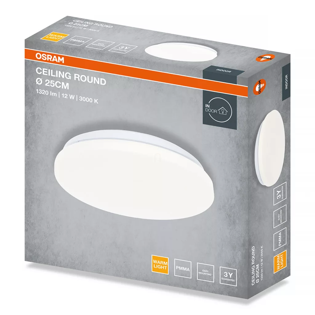Osram Plafonieră rotundă cu LED, 26 cm, 12 W, 3000 K, 960 lm, alb mat