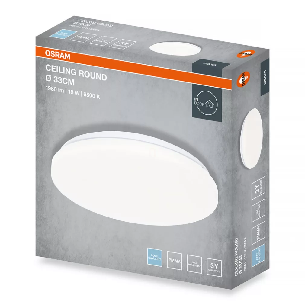 Osram Plafonieră rotundă LED, 33 cm, 18 W, 6500 K, 1440 lm, alb mat