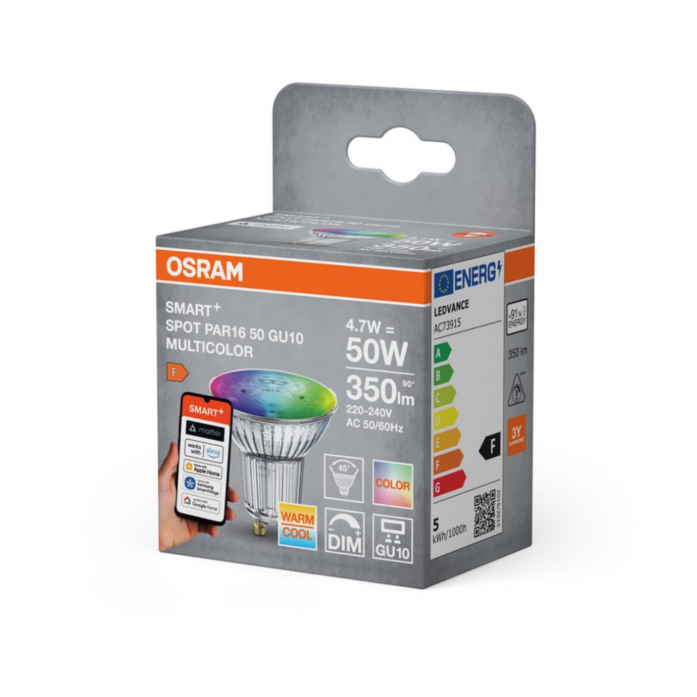 Osram Smart+ Matter Classic Multicolour GU10 LED, 4,7 W, 350 lm, 2700-6500 K +RGB, cu intensitate reglabilă