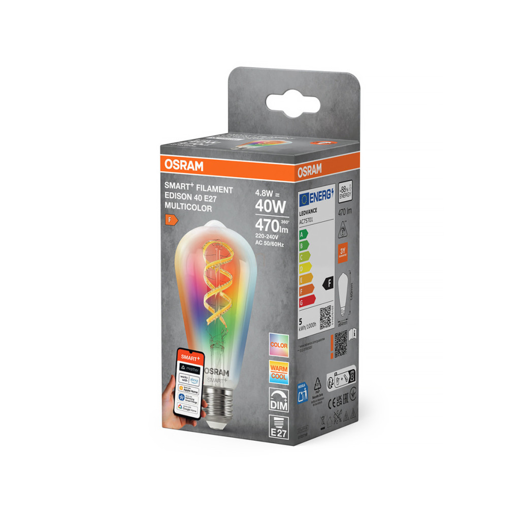 Osram Smart+ Matter Filament Classic Multicolour E27 LED, 4,8 W, 470 lm, 2700-6500 K +RGB, cu intensitate reglabilă