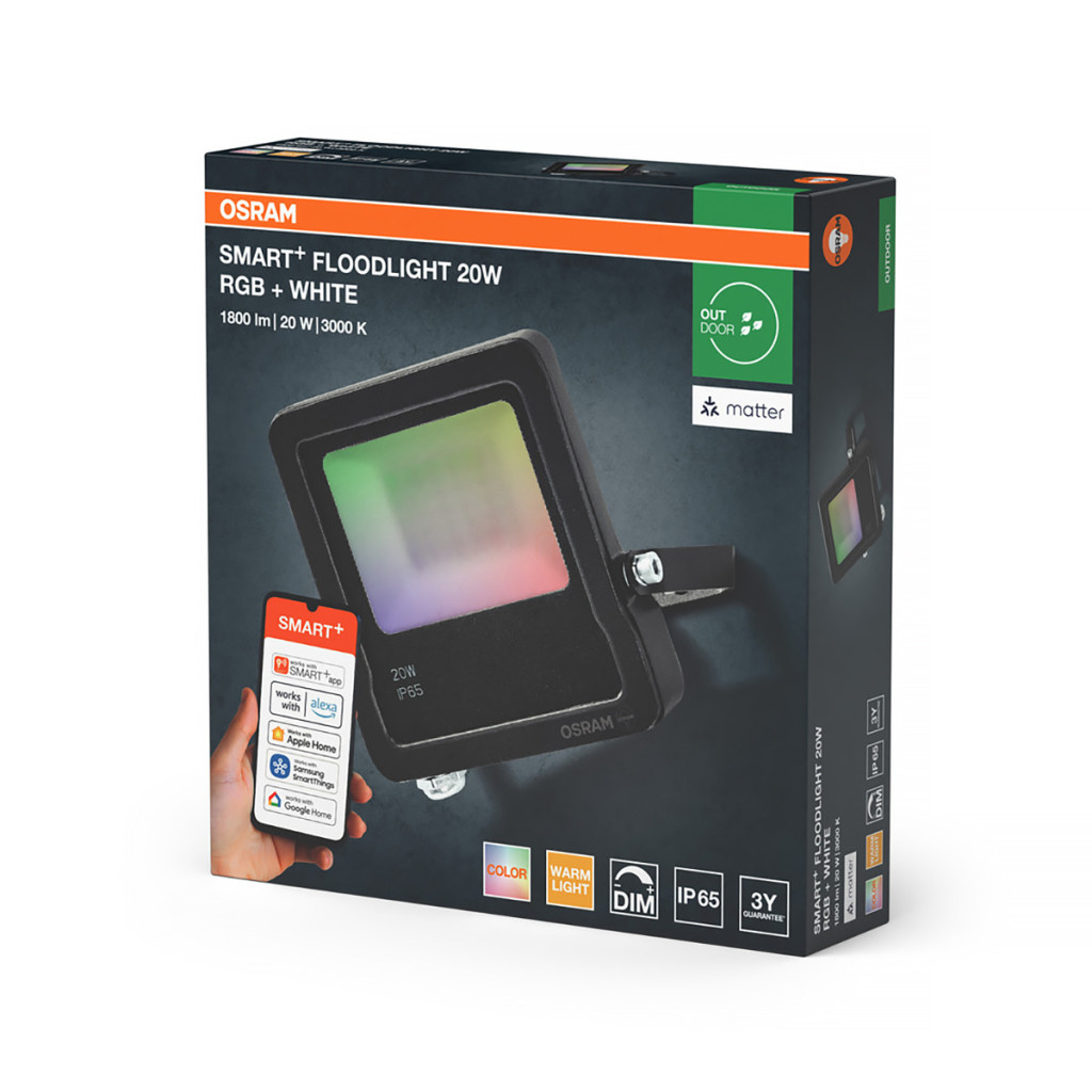 Osram Smart + Matter Floodlights spot LED controlabil, 20 W, 1600 lm, 3000 K+ RGB