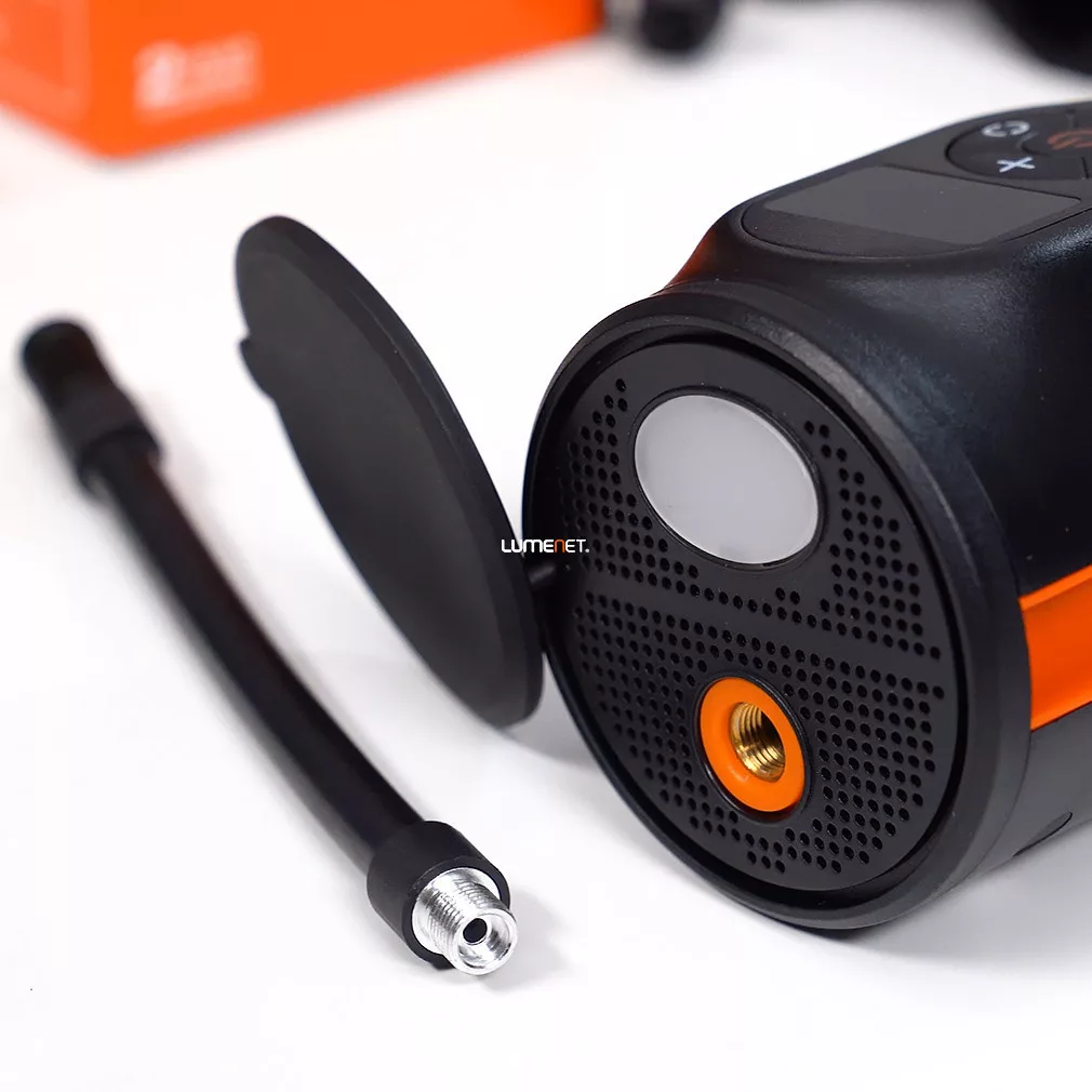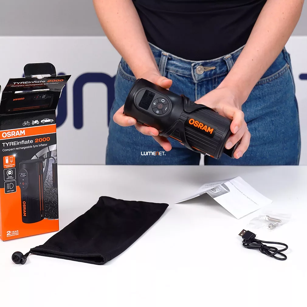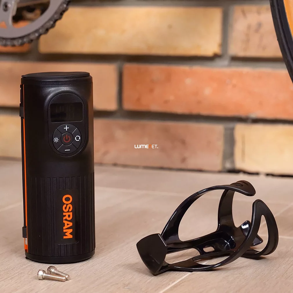 Bateria încorporată de 5200 mAh poate fi utilizată și ca baterie externă, ceea ce înseamnă că poate fi folosită pentru a încărca diverse dispozitive, cum ar fi telefonul sau tableta. De asemenea, este echipat cu o lanternă. În plus față de dispozitiv, cutia include și o geantă de depozitare și un set de adaptoare din două piese. Cu ajutorul adaptoarelor, puteți umfla nu numai anvelopele, ci și mingi sau orice dispozitiv cu supapă Presta. Excelența produsului este demonstrată de faptul că Osram oferă o garanție de 2 ani.